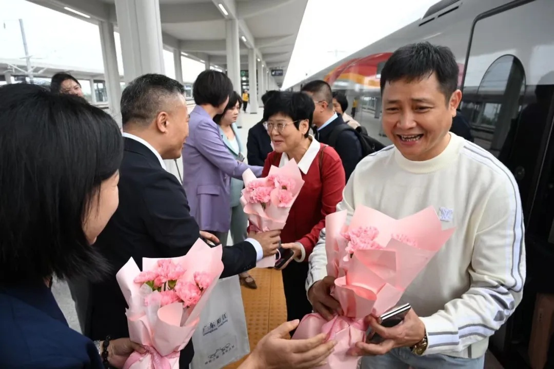12月22日,广湛高铁通车,阳江北站智能交通重要负责启用。当日12时02分,复兴号G5217列车经广湛高铁稳稳驶入阳江北站,跟着车门打开,乘客鱼贯而出。阳江市直交通、文旅等部门代表早已等候在站台,手捧鲜花与阳江特质顾忌品,招待昂扬湾区乘坐广湛高铁来到阳江的首批搭客。